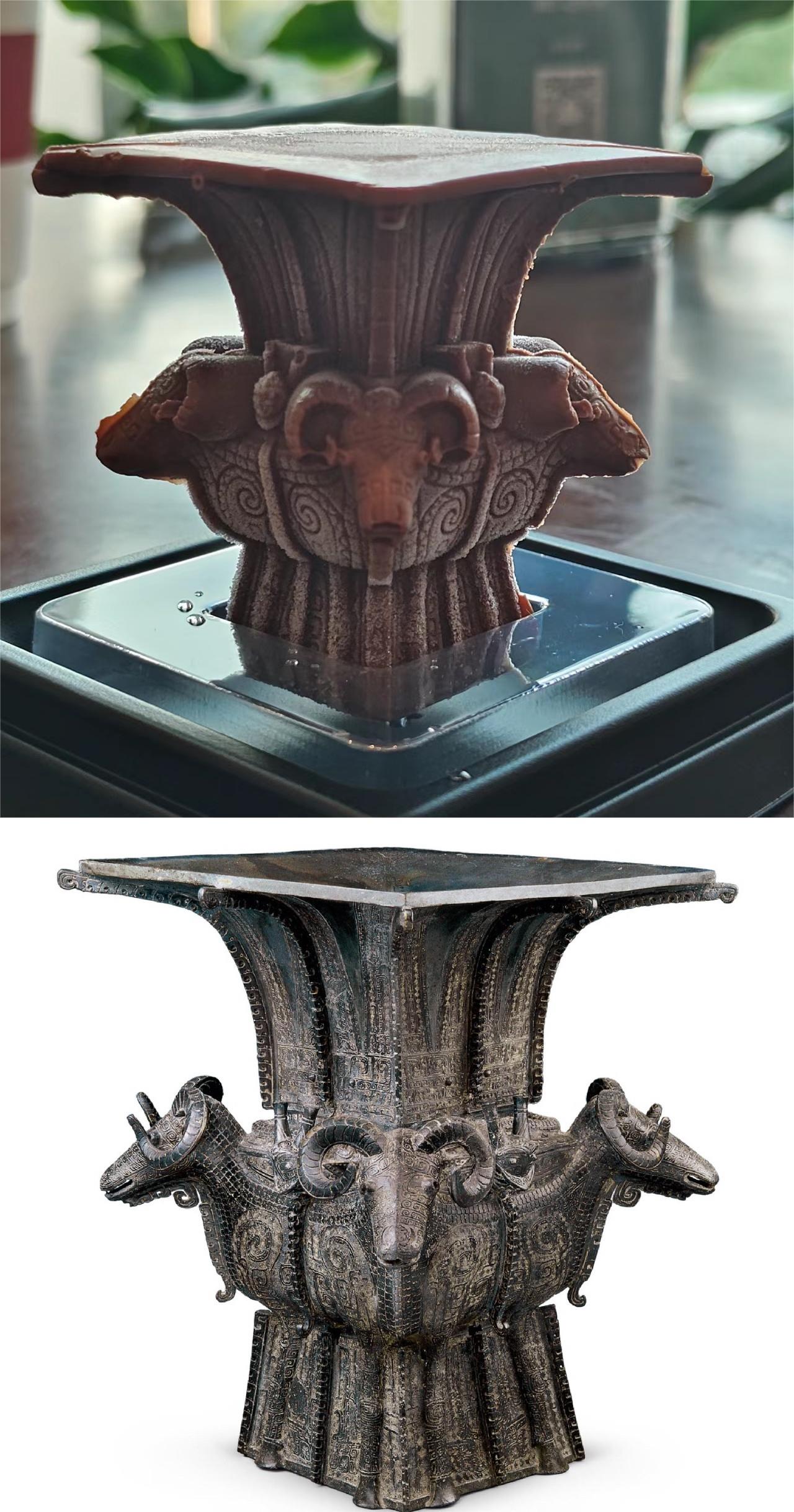 △网友晒图四羊方尊巧克力(上)和四羊方尊(下)