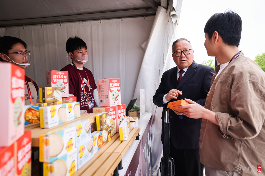 消费者咨询、选购心仪的食品。