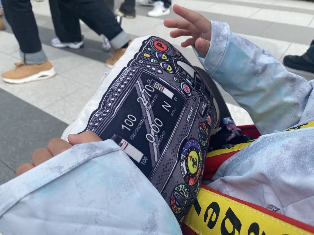 此外,座椅内的安全带也被改成了赛车款,女儿的小抱枕则是赛车方向盘造型,上面有各种按键和仪表,十分酷炫。