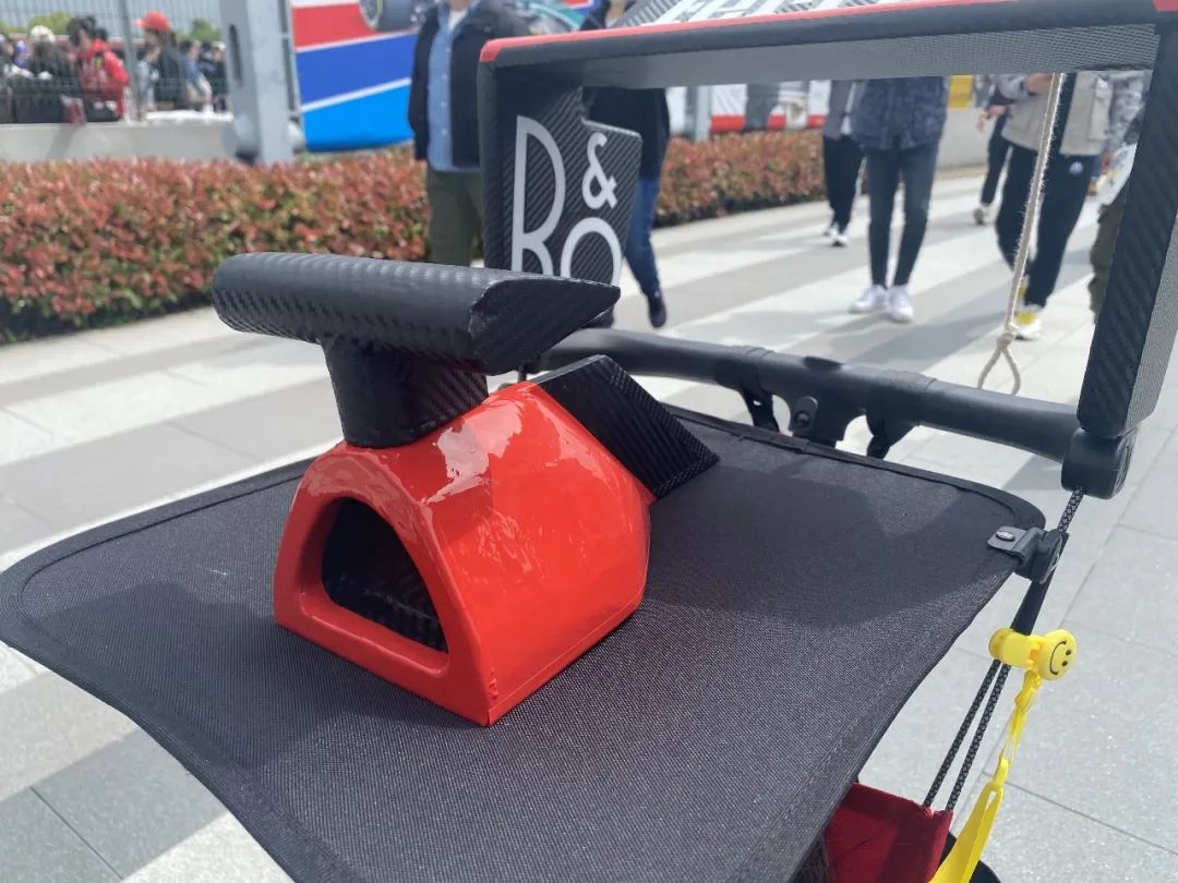 钟雳还在后半部的手推上制作了一个F1标志性的DRS(Drag Reduction System减少空气阻力系统)尾翼,靠一个手动的小拉环就可以调整尾翼的上下翻动,极具巧思。