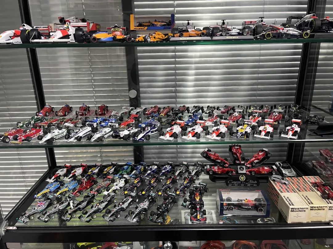 钟雳告诉小嘉,从2008年开始,他现场观看过瓦伦西亚、巴塞罗那、上海等14个场次的大奖赛,也收藏了从1950年迄今所有F1车手冠军车模。