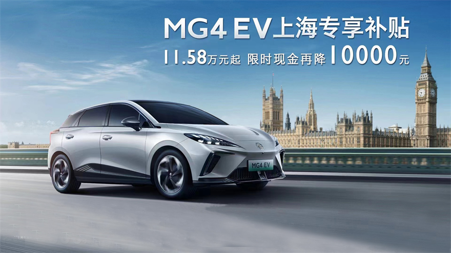 MG4 EV:上海专享补贴11.58万元起,限时现金再降10000元,下单再享上海专属权益礼20000元超值大礼包,超低门槛提新车首付1.68万元,日付59元起。