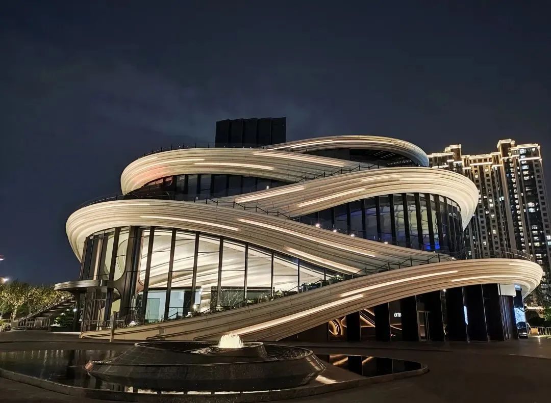 徐汇滨江首个公共艺术建筑“西岸漩心Orbit”近日完成了亮灯仪式。该建筑外墙的灯光设计采用了流线型元素,线性灯具的巧妙运用使得建筑外墙在远处望去仿佛一条条蜿蜒的丝带,与周边建筑交相辉映。外墙灯光的光影色彩变化丰富,不仅为建筑增添了浓厚的艺术气息,更使其在夜间展现出别样的立体灵动之美,融合了人文与科技的独特魅力,显著提升了建筑的辨识度。
