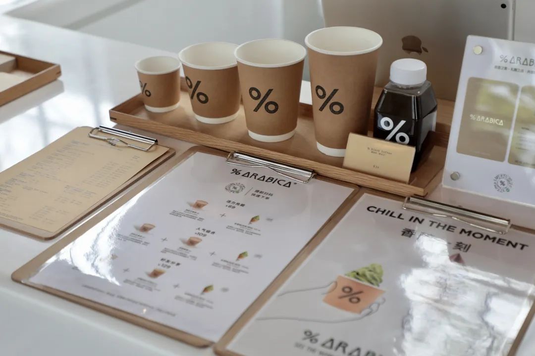“我们的品牌名称是Arabica(音译‘阿拉比卡’),商标是以一个百分号的形式出现,而其来源,是咖啡树枝串上了两个(咖啡豆)果实,外观上看着像百分号。”面对疑惑,店长这么说道。