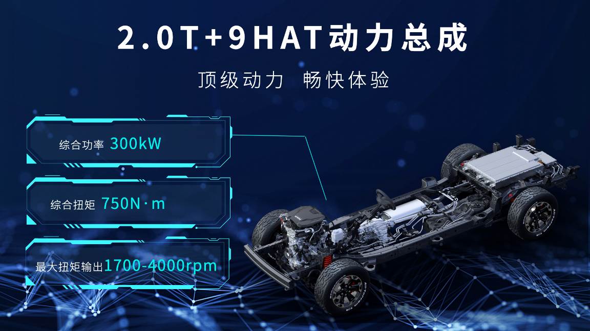 高性能,越野新能源天花板。山海炮Hi4-T采用高端越野专属纵置P2混动结构,搭载2.0T+9HAT超级混动系统,最大综合功率300kW,最大综合扭矩750N·m,零百加速仅需7.15秒,顶级动力,畅快体验。