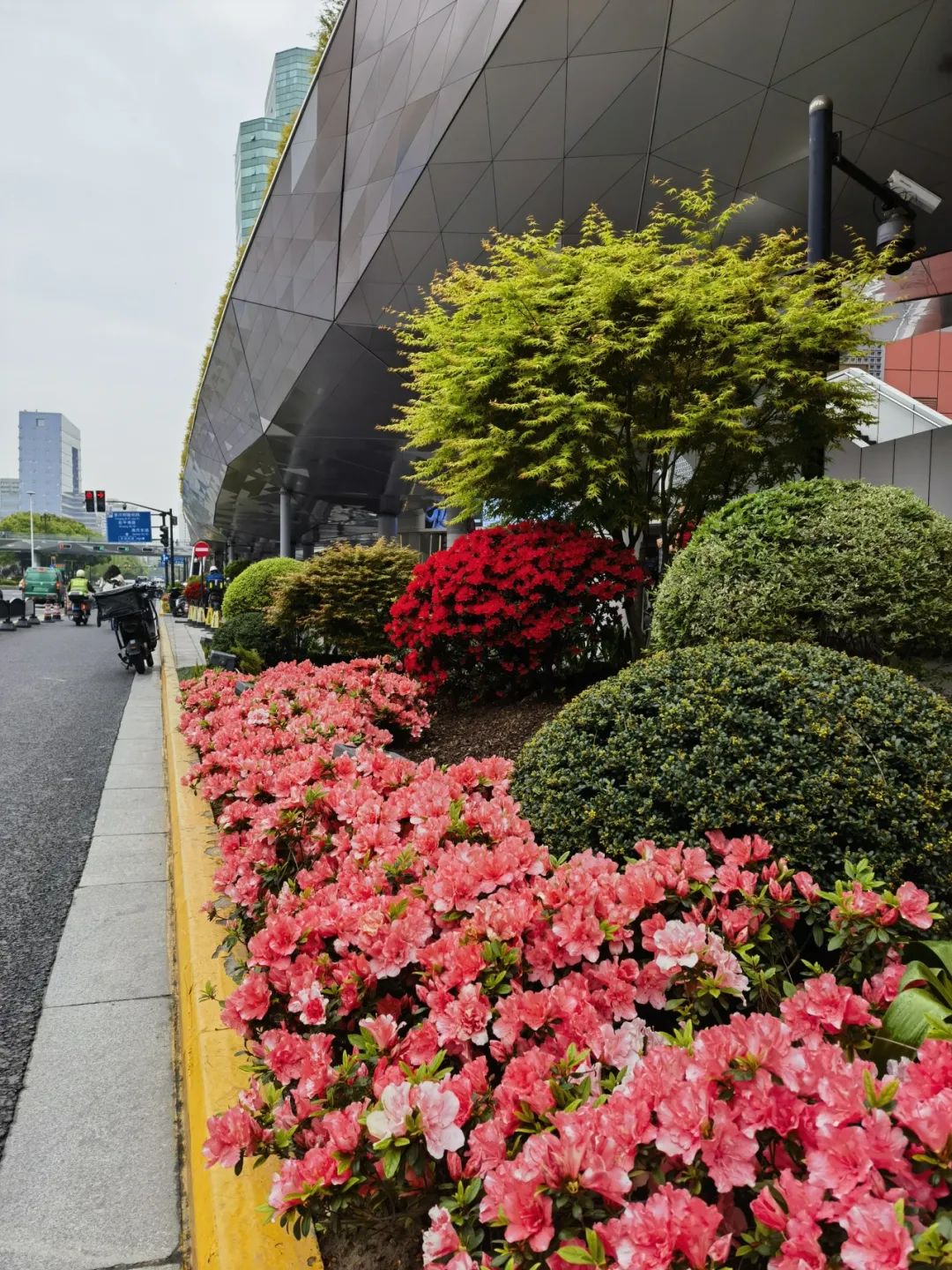 走进徐汇街头绿地,尽是映山红的鲜艳绚烂,婀娜多姿的毛鹃、紫鹃披着春光,伴着花香,醉了游人,难怪唐代诗人白居易曾写诗感慨“花中此物似西施,芙蓉芍药皆嫫母”。