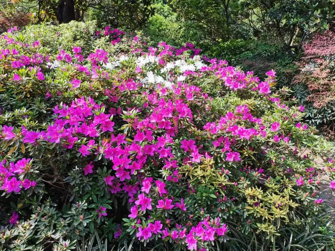 接下来的一个月,杜鹃花将持续盛放,记得前来纵情欣赏这春日限定的万紫千红吧!