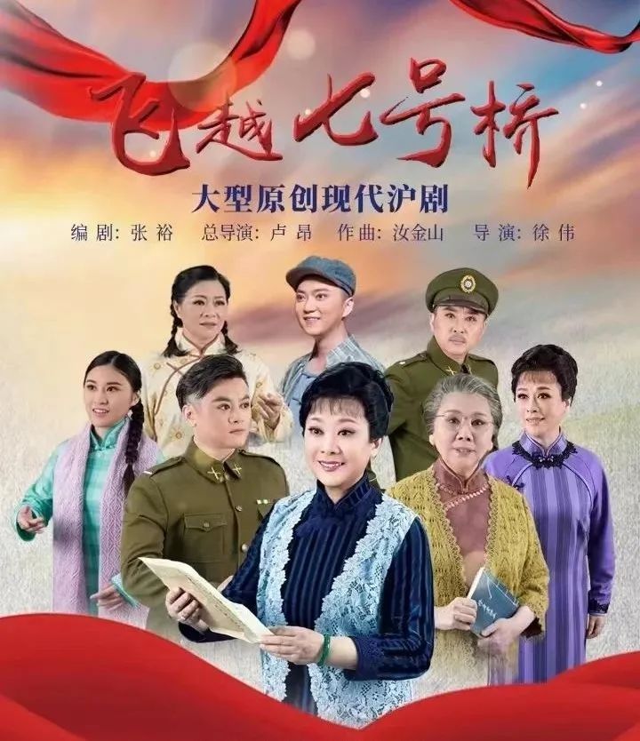 上海新东苑沪剧团创办于2015年。剧团2021年创排的《飞越七号桥》,取材于闵行区七宝镇革命遗址“七号桥碉堡”相关历史事件。1949年5月,解放军27军由松江、泗泾一线东进,15日攻占七宝,16日向漕宝路七号桥碉堡发起攻击,遭到国民党军顽固抵抗。激战三天后,解放军越过蒲汇塘,最终攻克了七号桥防线,打开了解放上海市区的西大门。《飞越七号桥》以争夺“碉堡布防图”为主线,再现了七宝地区地下党组织团结群众,积极支援解放军将士作战,与敌人斗智斗勇的抗争故事。