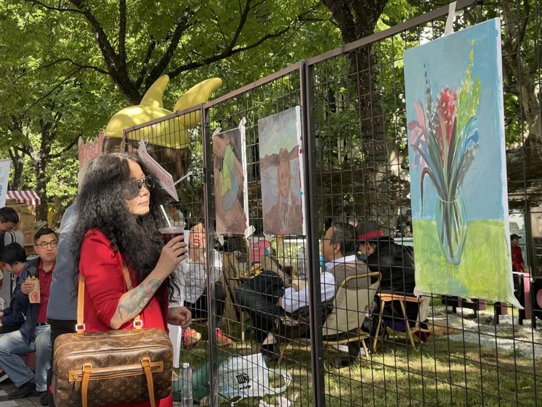 城市烟火与文艺气息相伴,是这次市集的一大亮点。在现场,长宁乐民文化服务中心与玉兰社区营造设置了一处“市民艺术家体验点”,邀请过往的市民进行免费的绘画创作,无论是否懂绘画,都可以参与其中。“我们希望通过非专业的方式,让更多市民参与到艺术创作之中,增强他们的参与感,这也是我们打造‘市民艺术家’这一概念的目的。”玉兰社区营造负责人麦子说道。