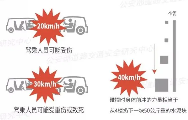 实验证明,车辆在以20公里/小时的速度行驶遇到事故,后排乘客不系安全带被甩出车外的几率高达50%。即使后排乘客未被甩出,在剧烈的冲击下,也容易与车顶棚、座椅、前窗玻璃等猛烈碰撞,轻则造成鼻梁,颈椎等损伤,重则造成头部、心肺等受损,甚至危害生命。