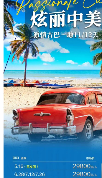 “这几天旅行社卖的较火的一款古巴一地线路,从北京经停马德里飞古巴,5月16日首发12天行程售价29800元/人,主要游览古巴首都哈瓦那、西恩福克斯、和世界文化遗产特立尼达小镇、巴拉德罗等古巴著名旅游城市,因为是免签,所以咨询的客人不少。但不少人一听价格还是犹豫了。”