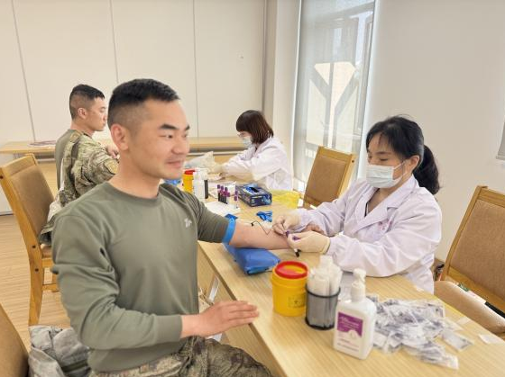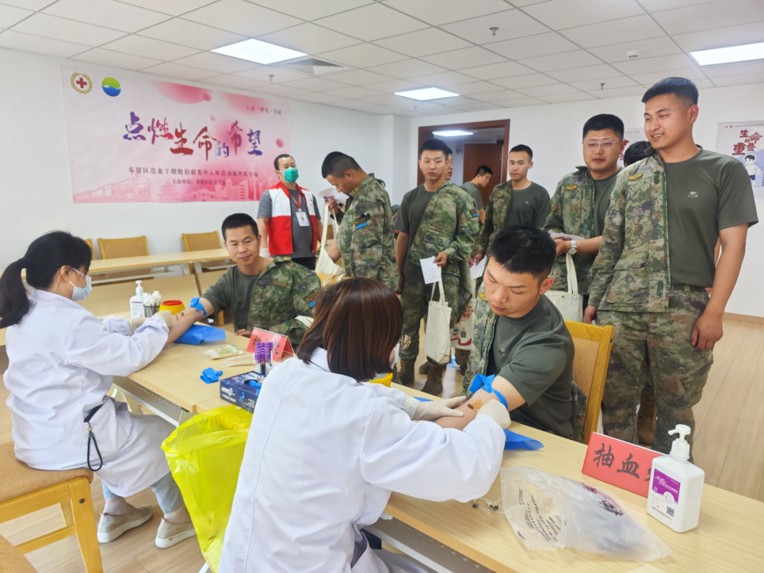 会场另一边,造血干细胞捐献志愿者集体入库活动现场人头攒动。共有52名来自海湾镇的部队官兵、企事业单位职工通过抽取血样的方式加入到造血干细胞捐献入库志愿者队伍,为血液病患者点燃生的希望。