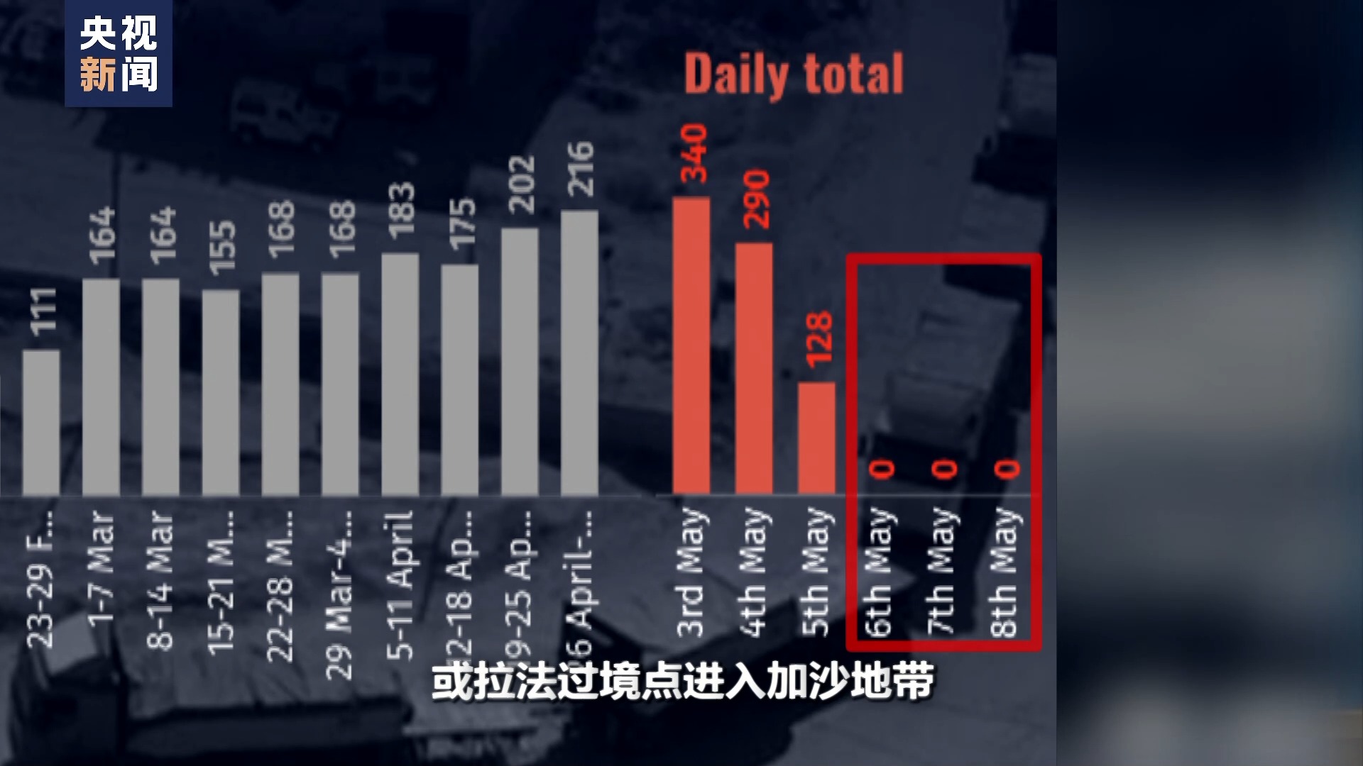 联合国秘书长发言人 迪雅里克:5月1日至5日期间,平均每天有48辆卡车和超过160000升燃料,通过拉法过境点进入加沙。