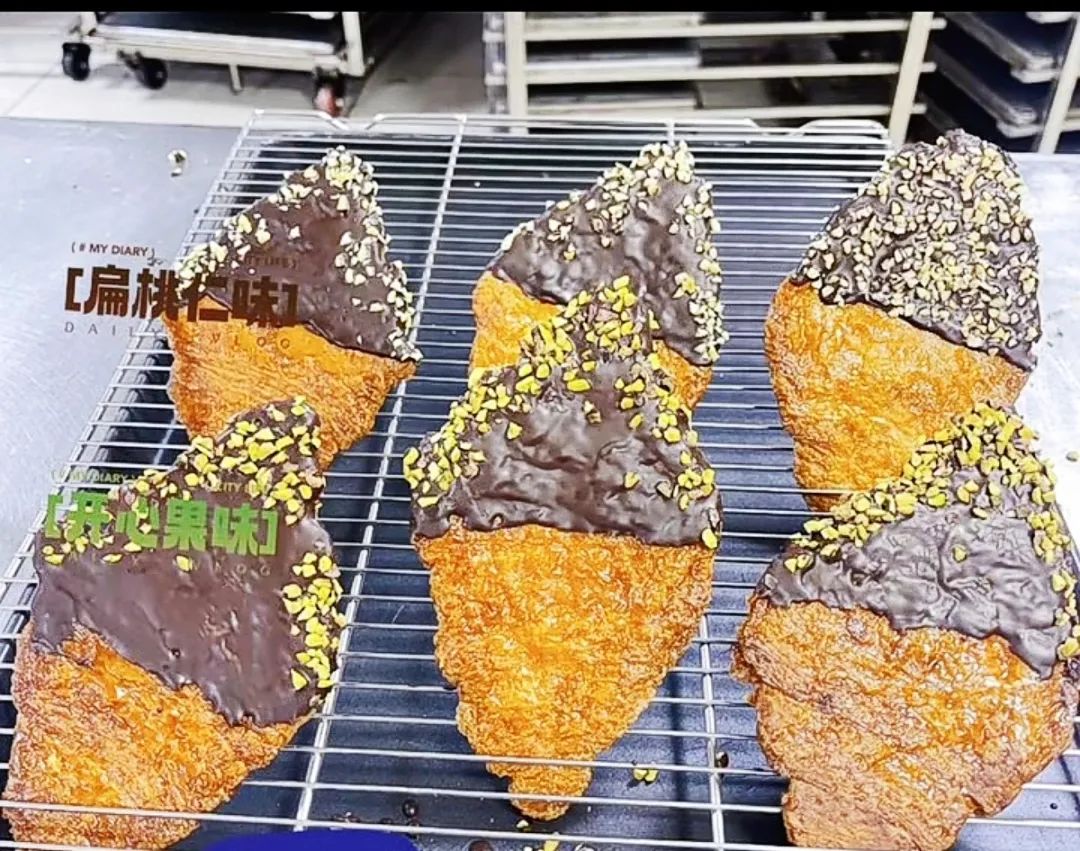 活动现场,一款压扁的可颂吸引了很多人的眼球,与平常形状蓬松、口感松软的可颂不同,这款产品压扁至巧克力厚薄,吃起来口感也脆脆的。“除了颠覆传统形状、口感,我们还向大家传递了一种情绪价值:将你的压力压扁,万事皆‘可颂’。”“食尚梅陇”理事长、上海不逗猫食品科技有限公司董事长夏萍为大家介绍了公司的创新产品。“今天,我还很惊喜地在现场遇到了合作伙伴,我们的一款仙人掌果粉被用于避风塘的缤纷菠萝包,我尝了特别美味,希望这样的合作能多多开展。”