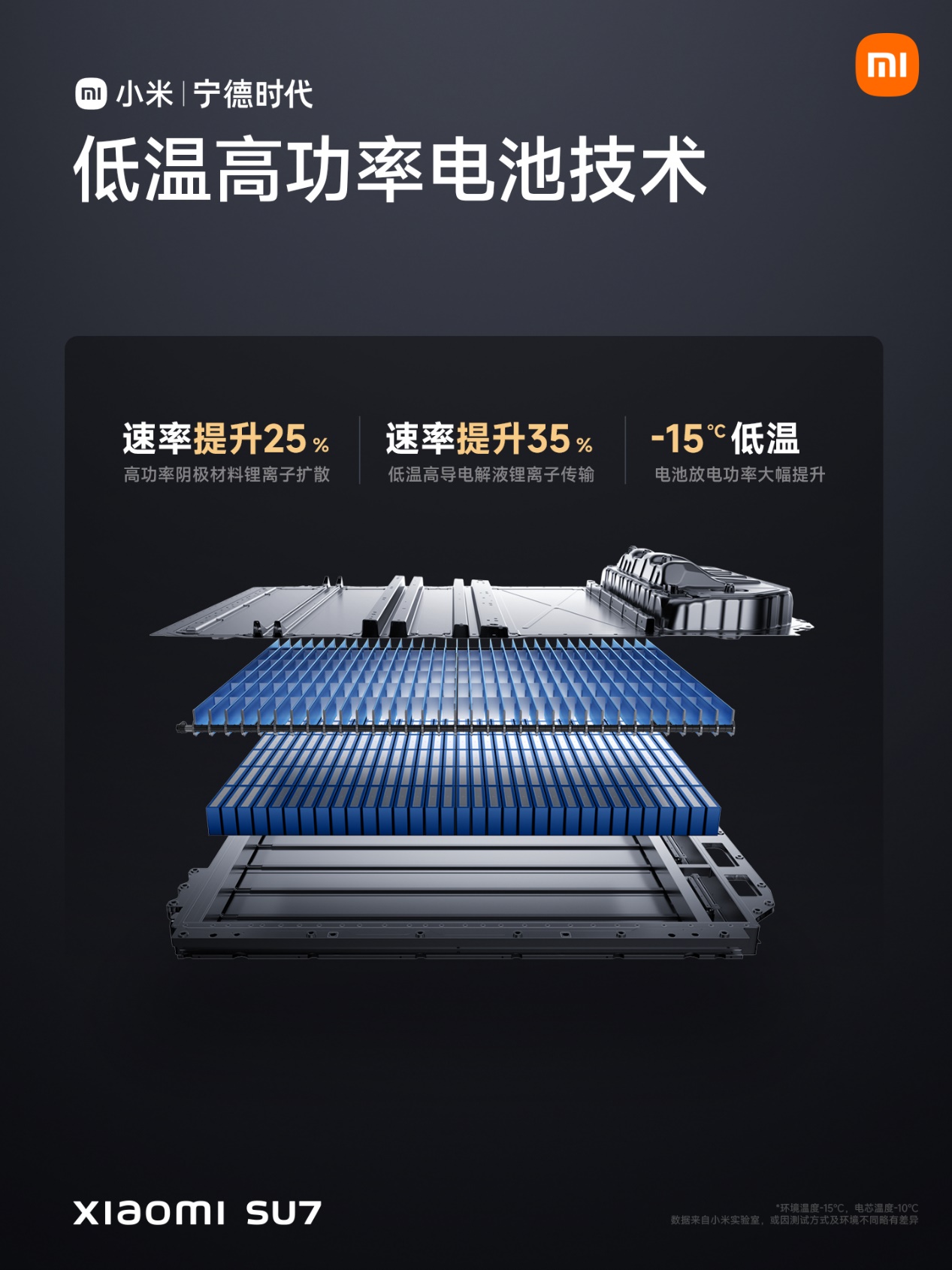 目前,小米推出SU7一款车型三种配置,其中2款型号均搭载宁德时代提供的电池包,涵盖三元锂电池和磷酸铁锂电池。此次小米与宁德时代合资成立电池公司,将进一步提高小米的新能源技术,并为旗下车型电池供应提供保障。