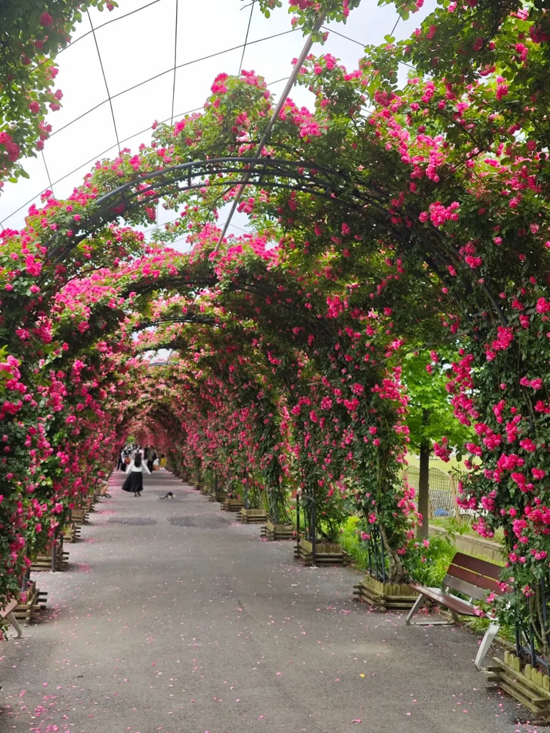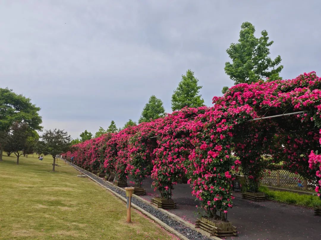 每当蔷薇花盛开时,长达几百米的蔷薇“隧道”便成为了广富林郊野公园的“网红点”。