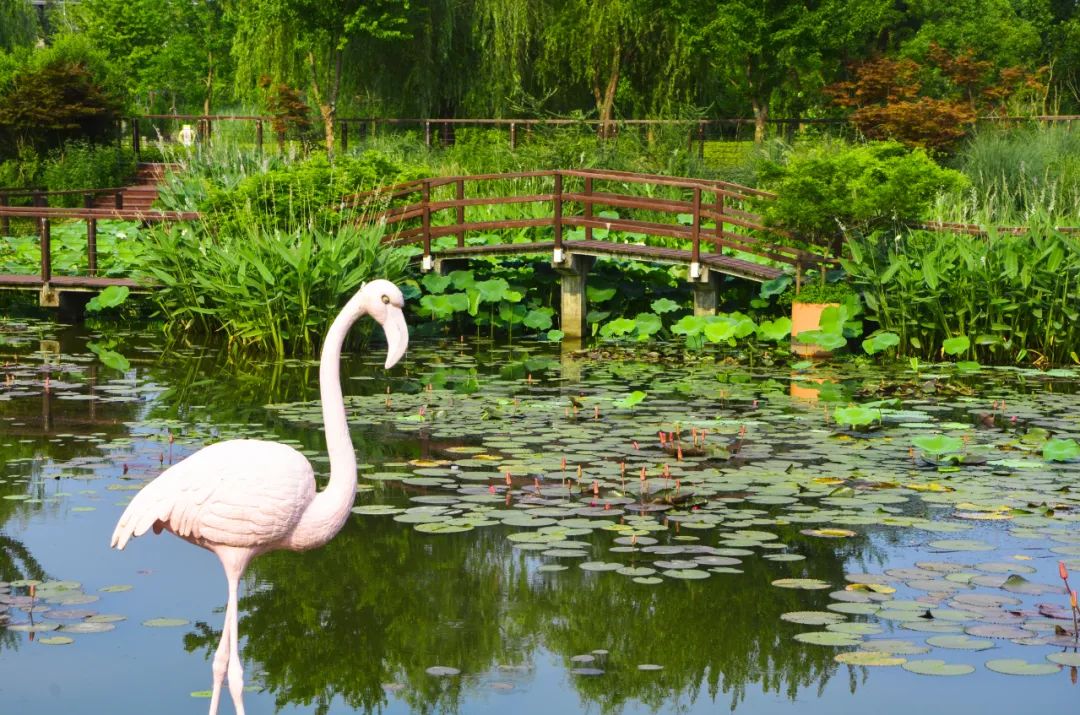莫奈花园是特别为园区内水域设计的生态水生植物园,以莲科植物为主、各种水生植物点缀其中,仿佛世界著名画家莫奈名画《睡莲》和《日本桥》般绚烂。