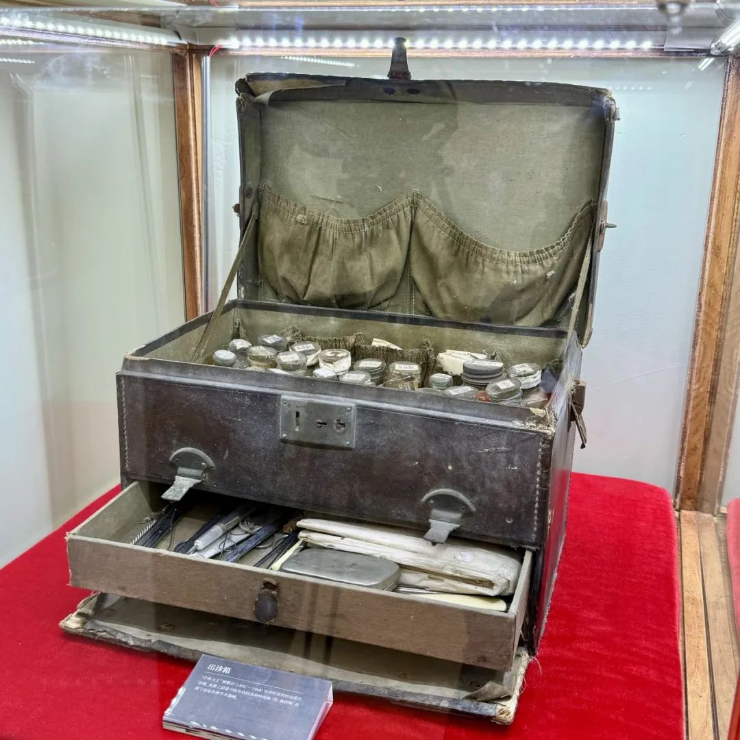 值得一提的是,书房内还藏有一个特别的中医出诊箱,来自于中医名门外科世家“疗疮大王”顾筱岩,皮箱上层是中医外科的各种外用膏、丹、散药物,下层则是各种手术器械,让参观者可以更直观地了解旧时中医的部分行医方式。