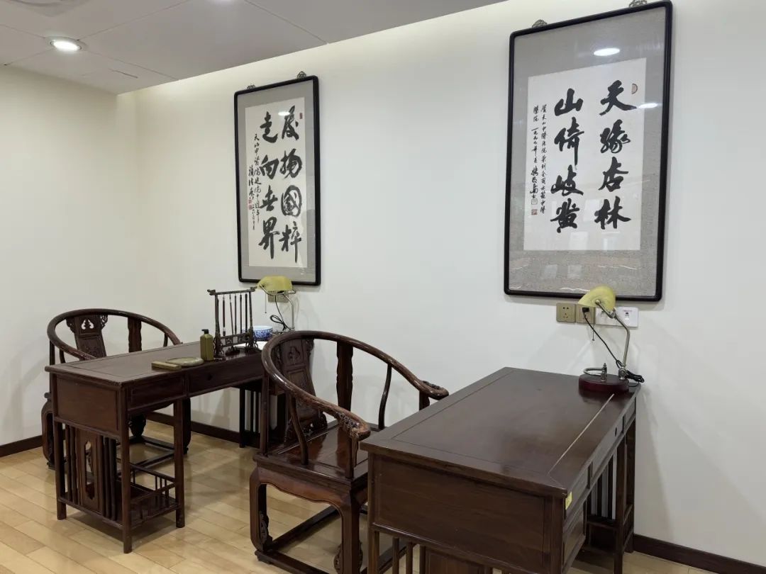 书房的设计也独具匠心,融合了传统中医元素与“马氏面瘫疗法”非遗元素,陈列有中医药用具、传统医疗及制药工艺、针灸推拿等非遗技艺等。