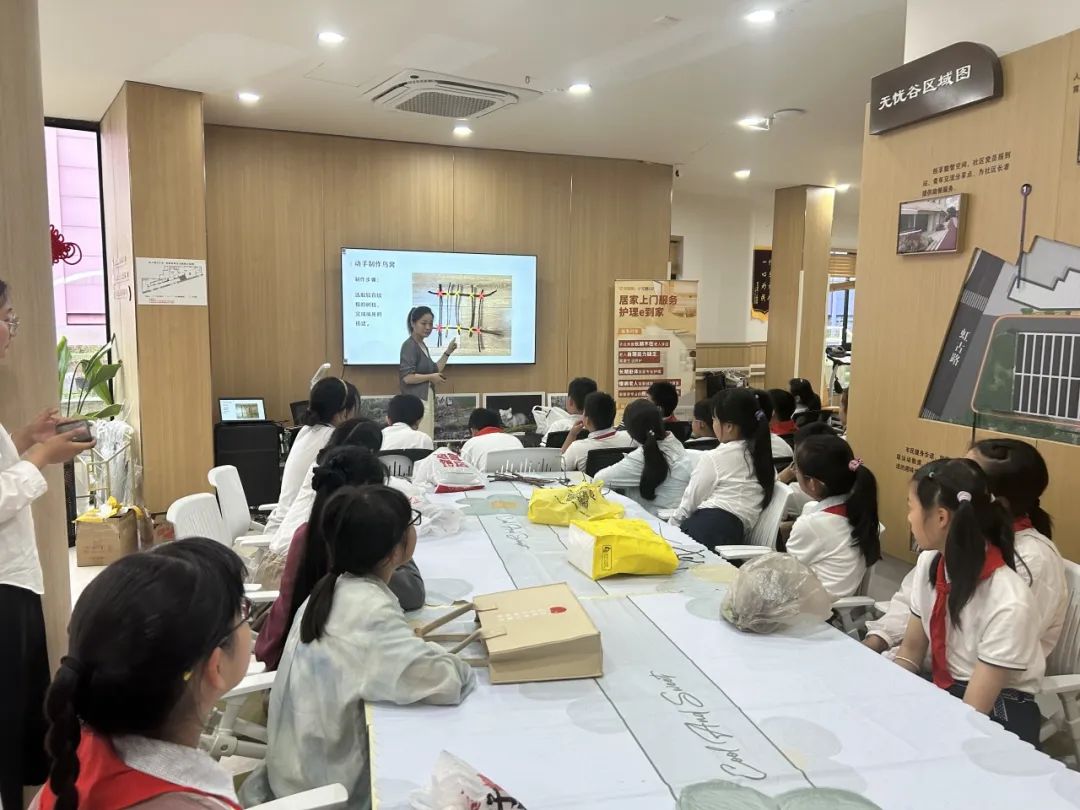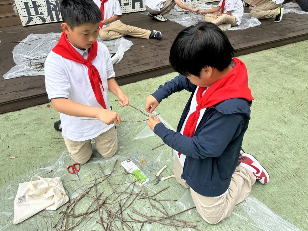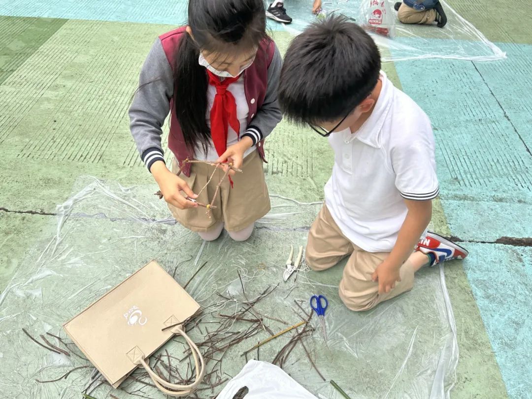 “乌鸫的喙是黄色的,而乌鸦是通体黑色,我们以后可别把乌鸫认作乌鸦咯!”来自曲阳第四小学的陆璐露老师正在为孩子们科普上海地区的常见鸟类。陆老师是虹口区科学与技术学科骨干教师,曾荣获上海市中青年教师教学评比一等奖。她的讲解生动有趣,牢牢地抓住了孩子们的注意力。随后,孩子们在老师的带领下来到花园里,就地取材,捡拾树枝制作鸟巢。整场活动让孩子们把对生态环境的关注和保护意识延伸到了日常生活中,为创造一个更加和谐美好的家园贡献自己的力量,也呼应了今年环境日的主题“全面推进美丽中国建设”。