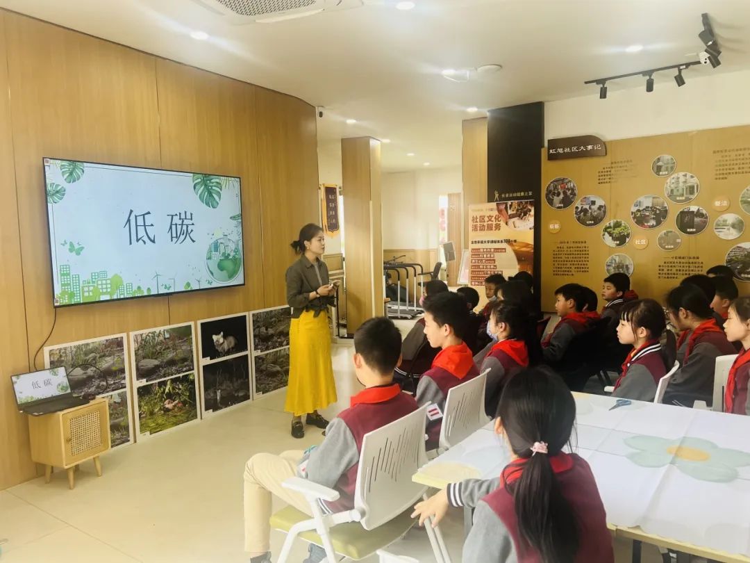 在那场活动中,虹旭居民区党总支书记吴红萍为同学们详细介绍了虹旭生境花园和秘境花园,讲述了花园的设计理念以及曾发生的有趣小故事。还带领同学们来到生境花园席地而坐,将花园里捡到的枯叶变废为宝,制作肥料,体验与大自然和谐相处。