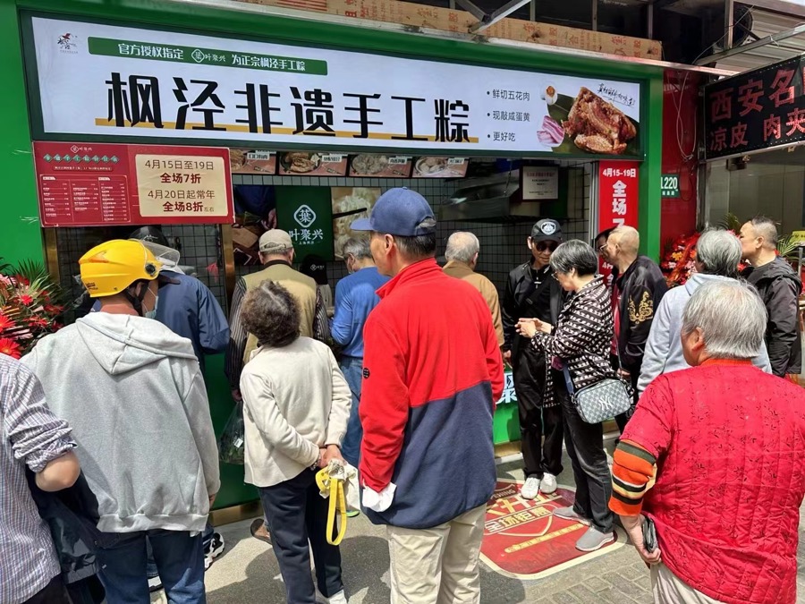 为了将枫泾粽子销往全国各地,2023年,“叶聚兴”负责人陈勋一方面扩充生产线,实现日产能突破6万只,另一方面在上海市区增加8家直营销售店,进一步增加了枫泾粽子的名气。