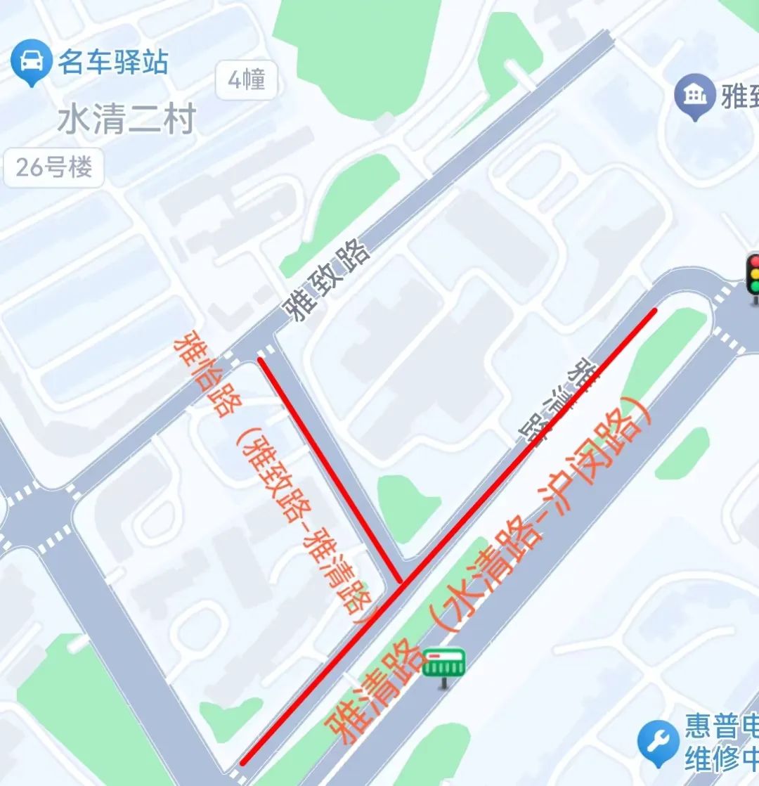 地址:雅致路18号临时停车路段:雅清路(水清路—沪闵路)单侧雅怡路(雅致路—雅清路)单侧