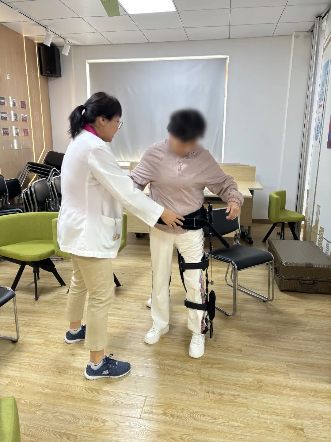一次,在与老伴一同去周家桥街道为老服务分中心预订助老餐时,沈老伯的身体情况引起了分中心负责人郦臻的注意。经过了解和沟通,在看到老人多次表达想恢复正常行走的意愿后,她建议尝试使用外骨骼下肢康复运动器,并把老人的信息反馈给了万宏悦诚康复辅具租赁工作人员。