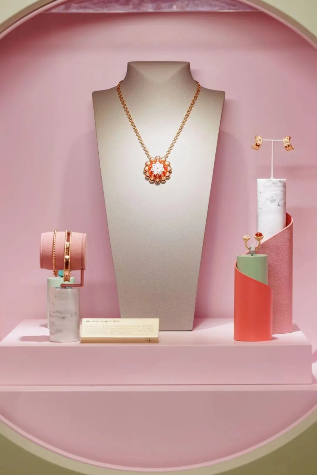 空间中最具吸引力的Perlée系列新作,延续品牌设计与工艺,圆润金珠与彩色宝石相结合,极具活泼灵动的特性,项链、手镯、戒指等品类一应俱全。