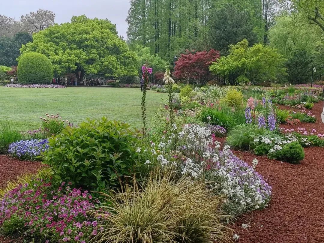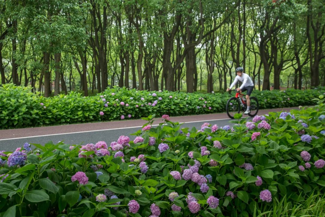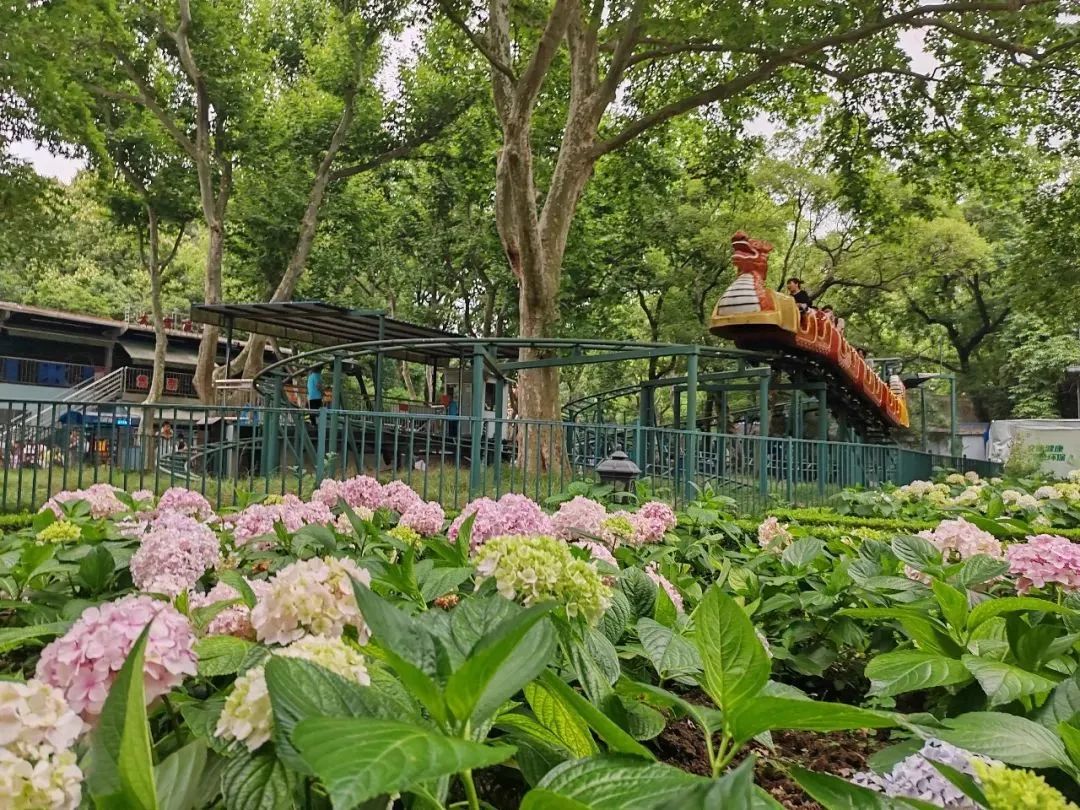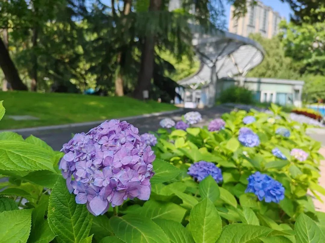 夏天的中山公园,绣球花坛和月季园充满了缤纷多姿的色彩和馥郁芬芳的香气,成为了一个花的海洋。