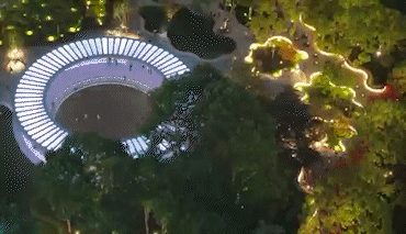 “虹桥源亭”是虹桥公园的视觉中心,下方的中央草坪成为了露天舞台,而廊下座椅成为了观众席。结合数控设备,“虹桥源亭”通过编程设计模拟了日落时晚霞及天空的光感变化,让夜公园充满魅力。公园增设一条环形慢跑道,与公园外部的慢行系统链接,为市民创造多种活动可能性。可坐、可爬的“S型艺术坐凳”可探索多种互动方式,拱门的童趣色彩受到了孩子们的欢迎,各种各样的新活动和新故事正发生在这座崭新的公园里。