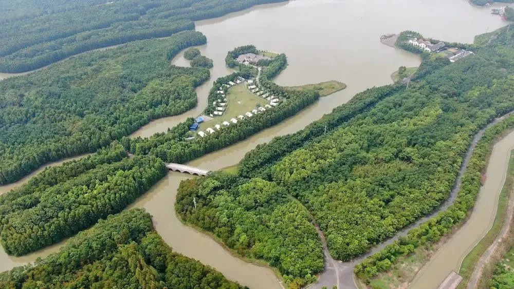 上海海湾国家森林公园内植树达400多万株,品种约350种,形成了以森林生态为基础的多彩的城市森林景观。贺岁档电影《飞驰人生2》中部分片段就在园内的百鸟湖中取景。这是上海目前最大人工湖泊之一,占地面积580亩。沿着百鸟湖两岸的是一排排整齐的水杉树。夏秋季节,放水淹林,形成水上森林的特有景观。