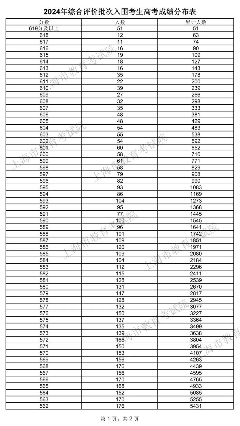1.下列考生成绩分布表仅供已获得综合评价批次各招生院校入围资格且高考成绩达到“特殊类型招生控制分数线”的考生参考。