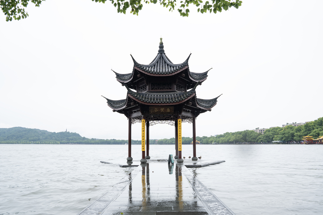 “暴力梅”持续发威,杭州近期持续降雨,导致西湖的水位不断升高,集贤亭、长桥公园的游步道一度被淹。