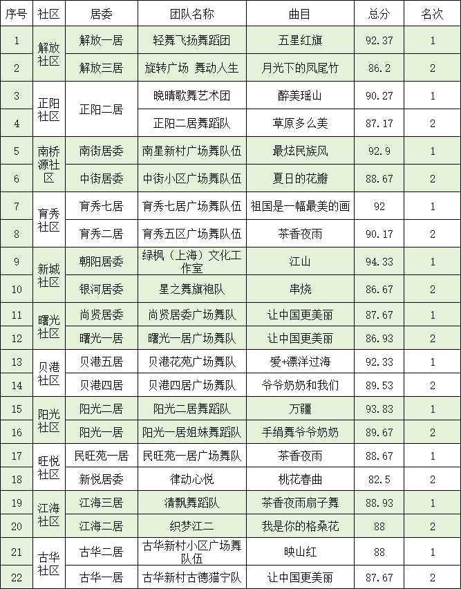 经过紧张激烈的角逐,评审们根据台风、音乐节奏感、协调一致性、舞蹈表达、动作质量、艺术表现等方面进行打分,最终评选出22个最佳展示奖及32个最佳风采奖,22支最佳展示奖获奖队伍成功晋级决赛。