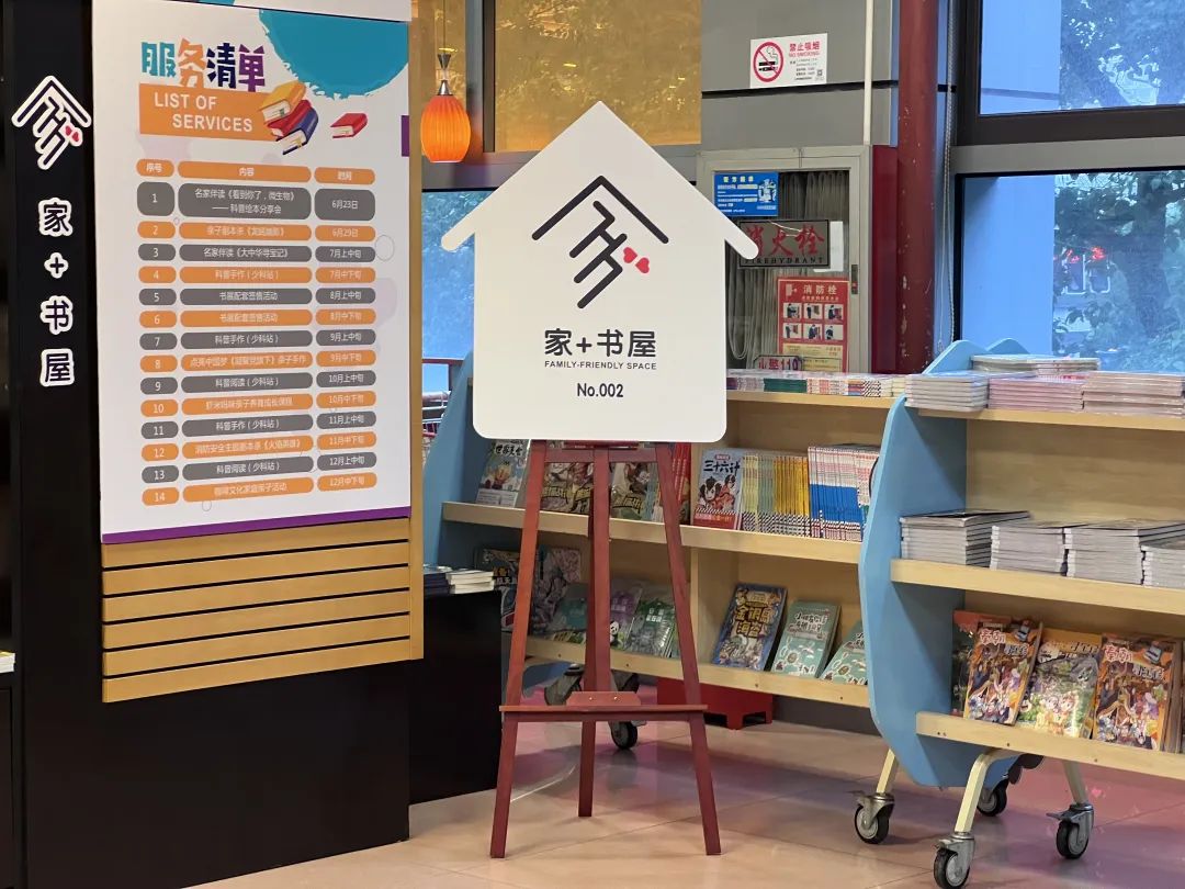 记者了解到,“家+书屋”位于上海书城长宁店内,共有“亲子共读吧”“爸妈成长会”“家友好小站”三大主题,可容纳50余人同时参与活动。