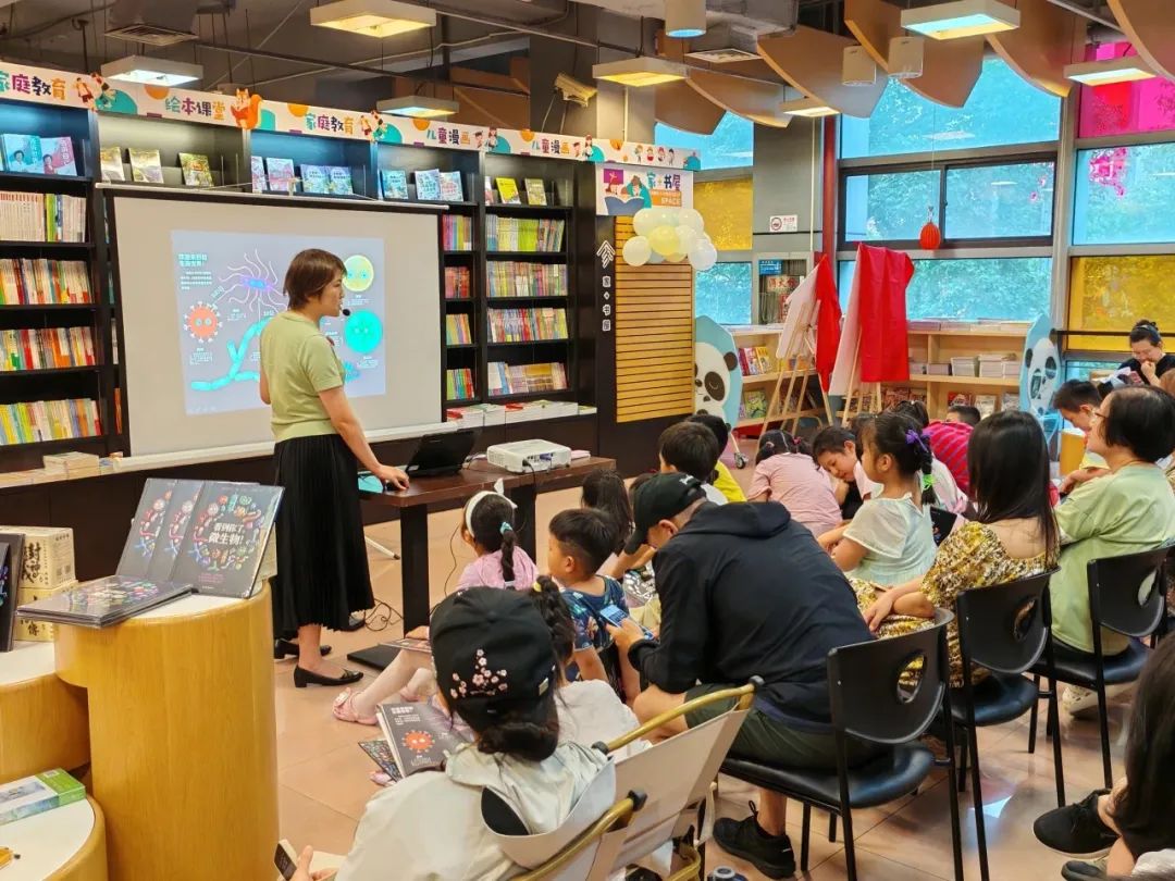 启动仪式暨“家+书屋”的首场活动上,少年儿童出版社《十万个为什么》分社总编辑王慧为大家带来了“看到你了,微生物”主题亲子阅读。20余户亲子家庭在王慧的引导下,手中捧着色彩斑斓的绘本,一同踏入微生物的奇妙世界。通过生动有趣的插图和深入浅出的文字,孩子们了解了微生物的种类、特性以及它们在日常生活中的重要作用。互动问答中,孩子们积极举手发言,争相展示自己的发现和理解。