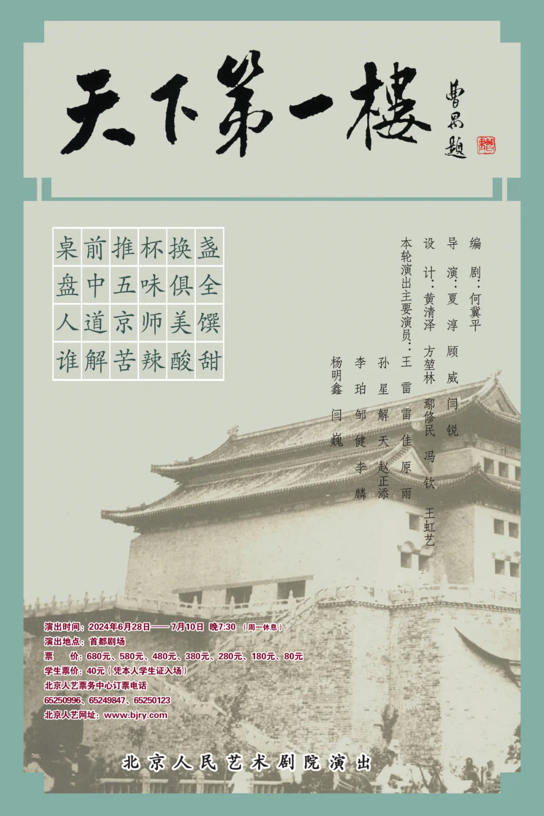 6月28日,北京人艺京味儿大戏《天下第一楼》重张上演,邀新老“顾客”再聚老字号“福聚德”,品“京师美馔”,解“苦辣酸甜”。近些年来,《天下第一楼》与《茶馆》、经典版《雷雨》一道,几乎每年都会登上首都剧场的舞台,已然奠定了人艺看家戏不遑多让的地位。本轮演出将持续至7月10日。