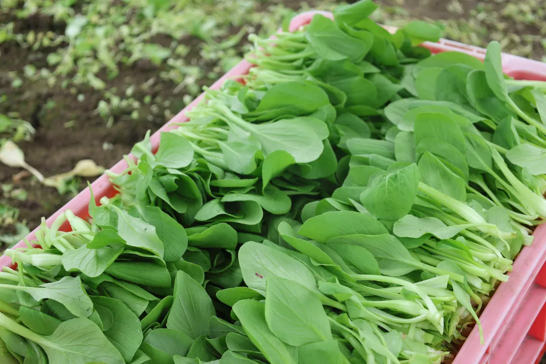 另一边,在捞福来分拣中心,工作人员正在加工车间分装、打包新鲜采摘的果蔬,以便及时销售或储存,保证市场正常供应。据了解,该合作社以种植鸡毛菜、空心菜、杭白菜等绿叶菜为主。合作社经理称,目前蔬菜整体长势良好,受梅雨季节影响较小,预计鸡毛菜的亩产量可达1200公斤左右,空心菜的亩产量可达3000公斤左右。