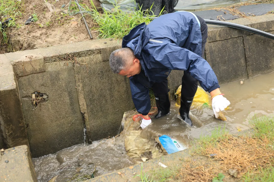 上午8时,记者来到叙中村捞福来蔬菜合作社,看到负责人正在基地主沟渠旁,一一检查并清理水底的淤泥杂草;同时疏通排水通道,将雨水排至外部河道,防止其倒灌大棚。