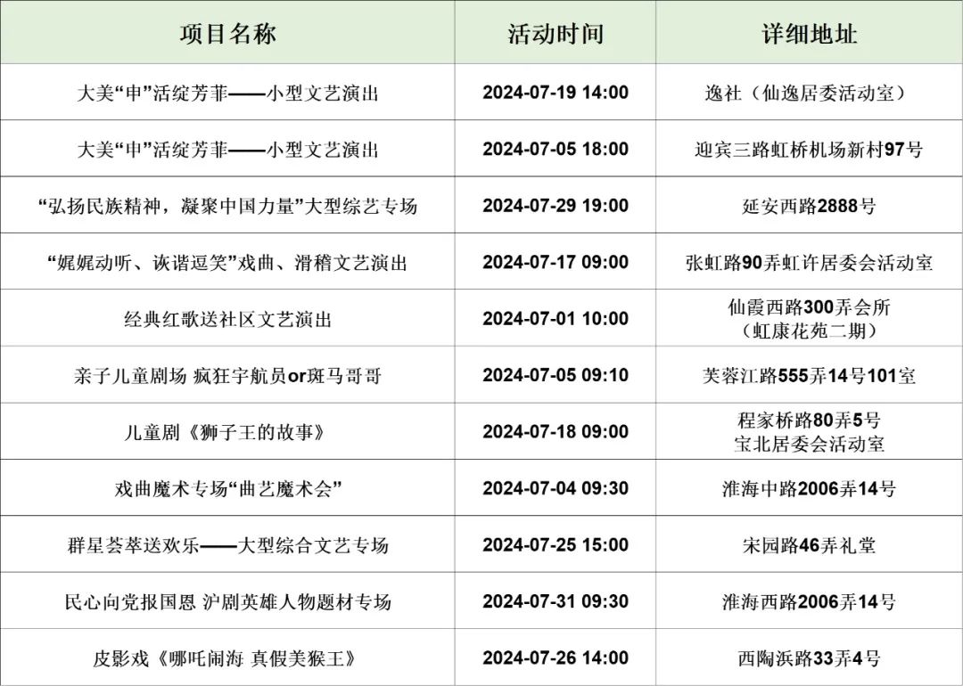 今天(7月1日)起,上海中小学生迎来2个月的暑假生活。7月,长宁文化艺术中心准备了一系列配送到居民“家门口”的文化大餐,有丰富多彩的文艺演出、趣味十足的特色活动、题材丰富的公益电影……