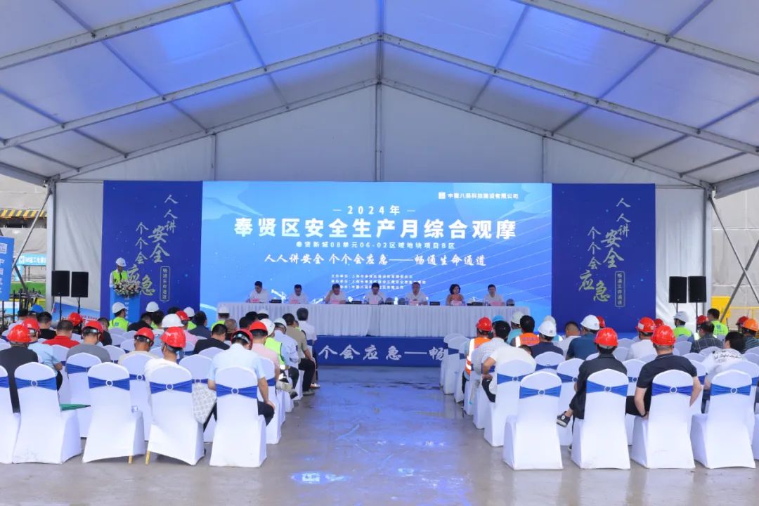 6月28日,“人人讲安全个个会应急——畅通生命通道”2024年奉贤区安全生产月综合观摩在中建八局科技建设有限公司奉贤花海项目举办。