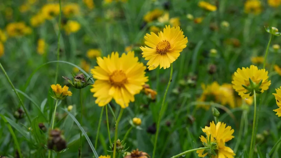 剑叶金鸡菊和勋章菊是热烈的金色,