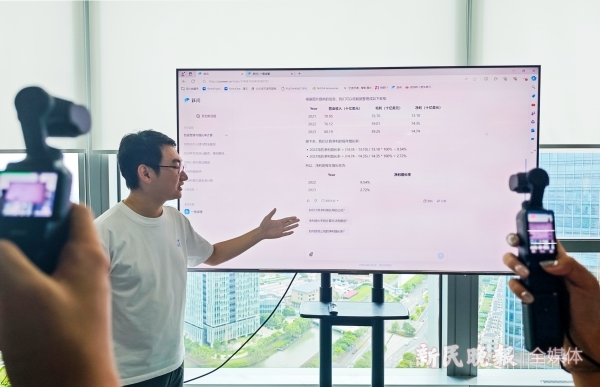 资料图:阶跃星辰研发人员介绍产品 新民晚报记者 陶磊 摄