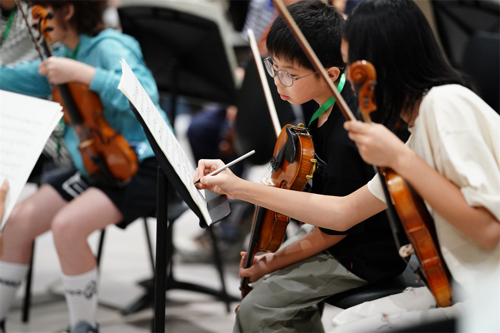 跨越七百多公里,9岁的郭祐霖背着小提琴琴盒,从青岛来到上海。作为上海夏季音乐节学生节日乐团的一员,他正和小伙伴们潜心排练,为“夏日微风”音乐会冲刺。