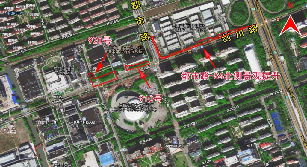 据了解,剑川路绿化品种单一、老旧,有围墙阻隔,都市路—S4以北区域景观空间形式单一,主要为市政道路两侧行道树和路边绿化带,缺乏漫步空间、休憩空间等景观公共空间及相关设施小品。