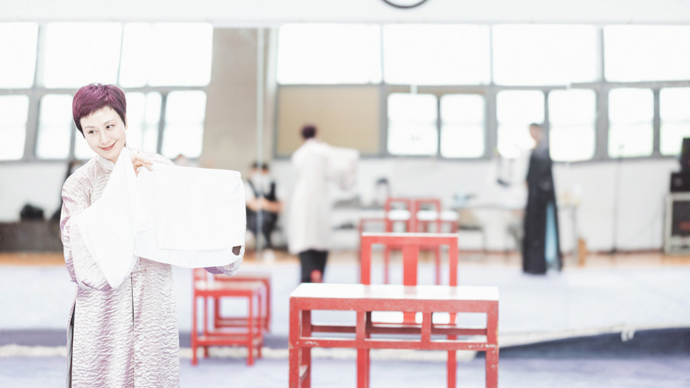 排完《游园惊梦》,《宇宙锋》“修本金殿”响排又开始了。史依弘一秒切换,从杜丽娘变身赵艳容。“金殿”人员众多,台词繁复,穿插大量对白与表演。史依弘坦言,梅兰芳先生的戏都卖座,唯独《宇宙锋》不卖座,很难演,很多演员更不敢演了。1997年,史依弘首次挑战《宇宙锋》,还曾整理演出全本《宇宙锋》,“确实不容易,但我对戏和人物的喜爱不减。”