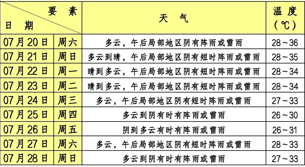 具体天气预报: