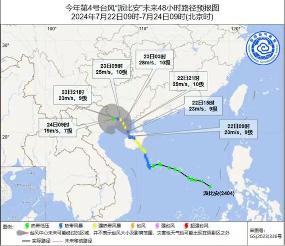 海南省气象局2024年7月22日9时20分继续发布台风三级预警:请海上作业船只继续做好避风措施,有关部门加强在港渔船管理,做好城乡积涝、地质灾害等次生灾害的风险防御工作。