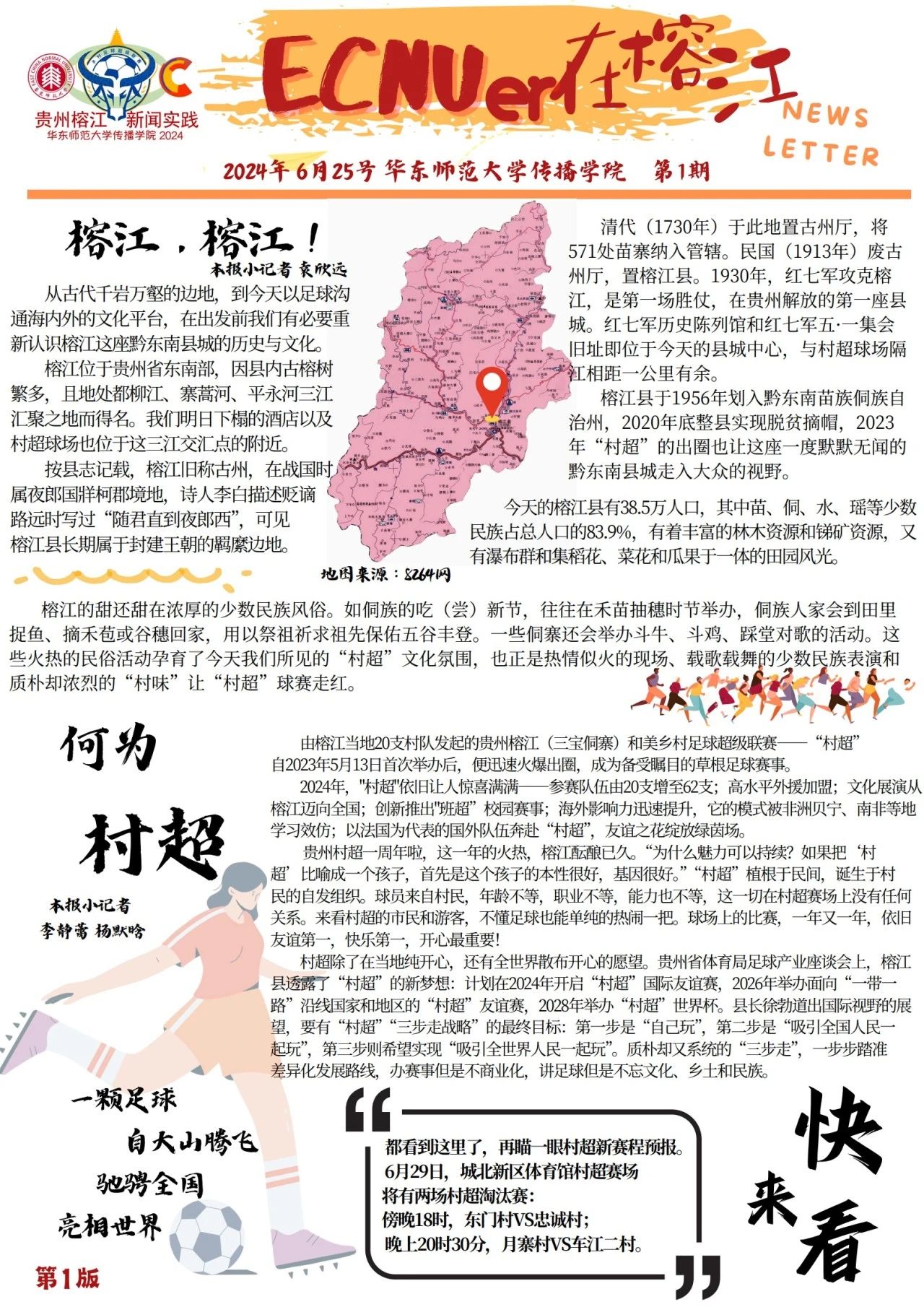 华东师大暑期新闻实践团在榕江办的第一期报第1版